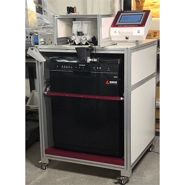 如今洗碗機成為一種常見的家用電器,洗碗機對廚具的檢測已經(jīng)成為產(chǎn)品檢驗中的一項重要測試。全自動執(zhí)行符合 EN-12875-1 標準的測試方法,包括規(guī)定數(shù)量的洗衣粉/河道清潔劑的全自動劑量。所有漂洗和干燥項目以及測試周期均可自由編程。 主要功能: 1.自動啟動及檢測運行狀況。 2.根據(jù)洗碗機的加粉時自動入料,有兩種模式選擇,加粉模式是設(shè)置重量進入。加塊模式是入洗碗塊,每次一塊。 3.洗碗機工作完后,根據(jù)設(shè)置的等待時間等待,等待結(jié)束后自動開門。 4.開門后散熱時間可以設(shè)置,到時后自動關(guān)門。 5.根據(jù)設(shè)置工作次數(shù),關(guān)門后,未夠次數(shù)時自動重新啟動,到次數(shù)后工作結(jié)束并聲光提示。 6. 故障報警功能,屏幕顯示并聲光報警。 7.自定義程序工作的是全功能型測試洗碗機,適合各類型標準。洗碗時間,稱重進粉或進塊,進水量,溫度,軟水,亮蝶劑按需要均可自由設(shè)置??煽刂频南礈鞚舛取⒑愣囟?、時間等。 8.主要按...